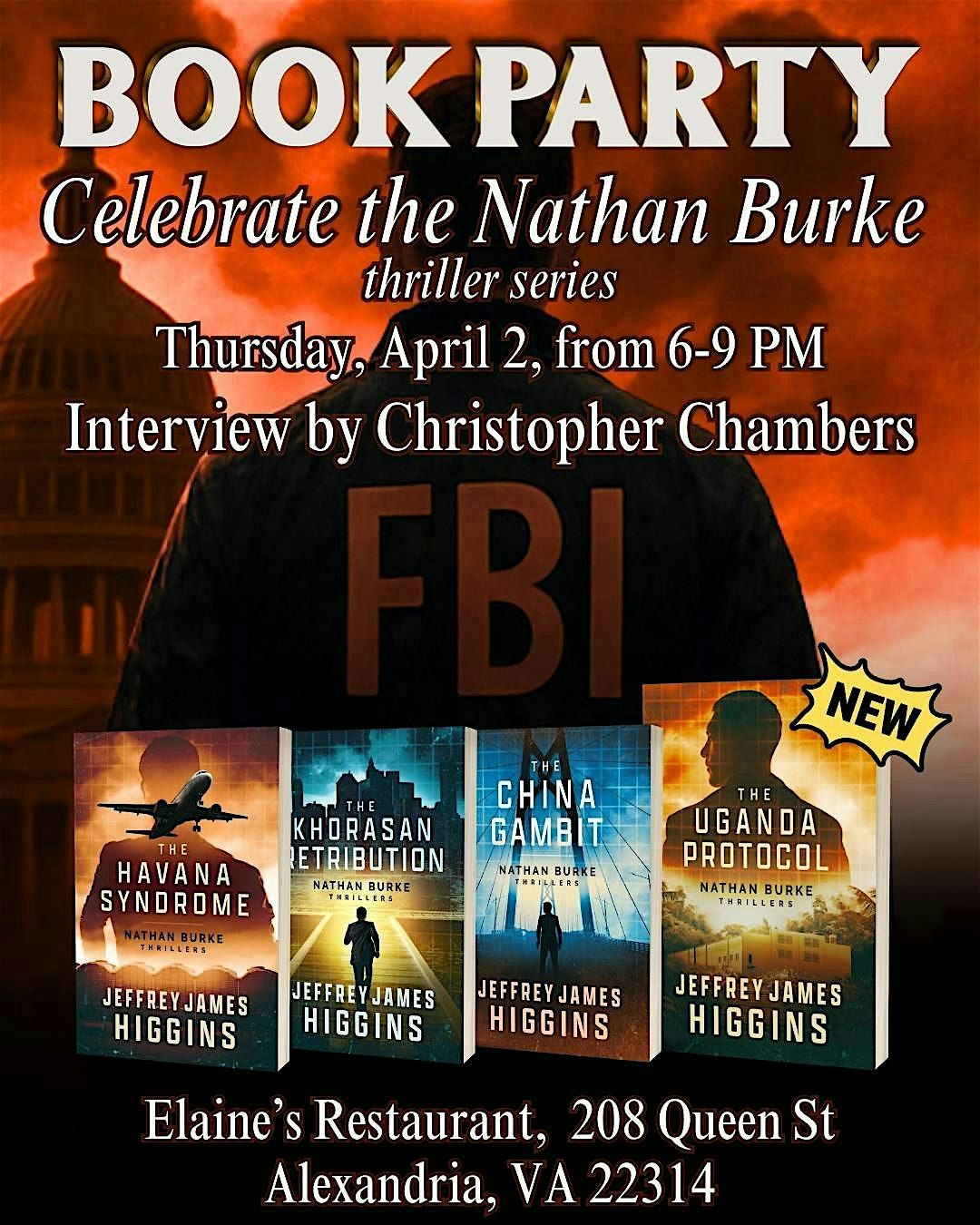 Launch party for THE UGANDA PROTOCOL, Book #4 in the Nathan Burke thriller series.