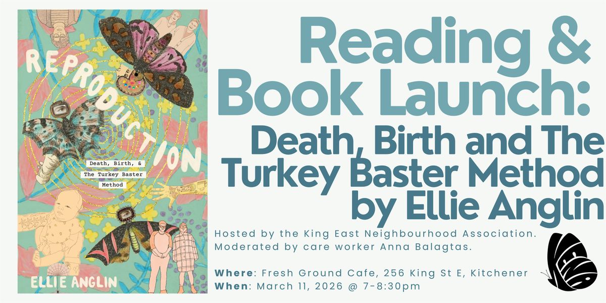 The King East Neighbourhood Association is pleased to invite you to an in-person reading and fireside chat celebrating the release of Ellie Anglinโs new book "Reproduction: Death, Birth and The Turkey Baster Method". Through humour and honesty, Ellie explores the realities of reproduction and queer family planning, from deeply challenging moments to the quirky turkey baster method.