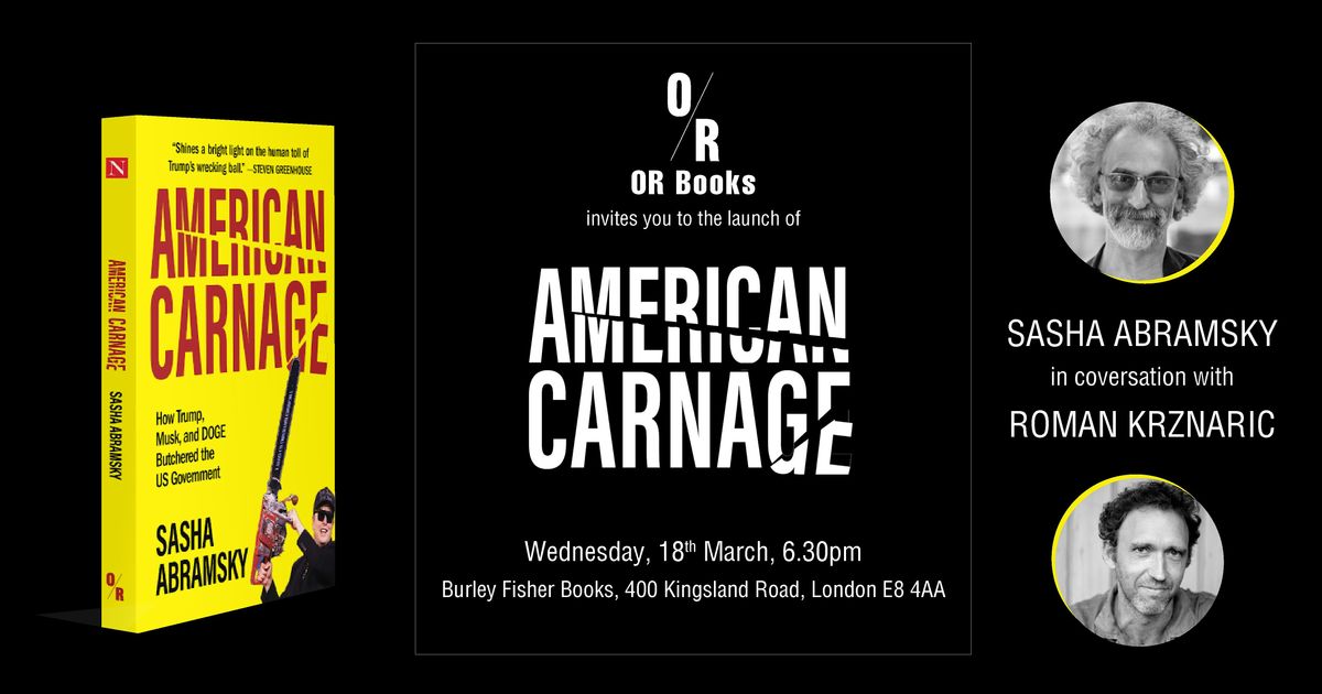 Join us to celebrate the launch of Sasha Abramsky's American Carnage: How Trump, Musk, and DOGE Butchered the US Government