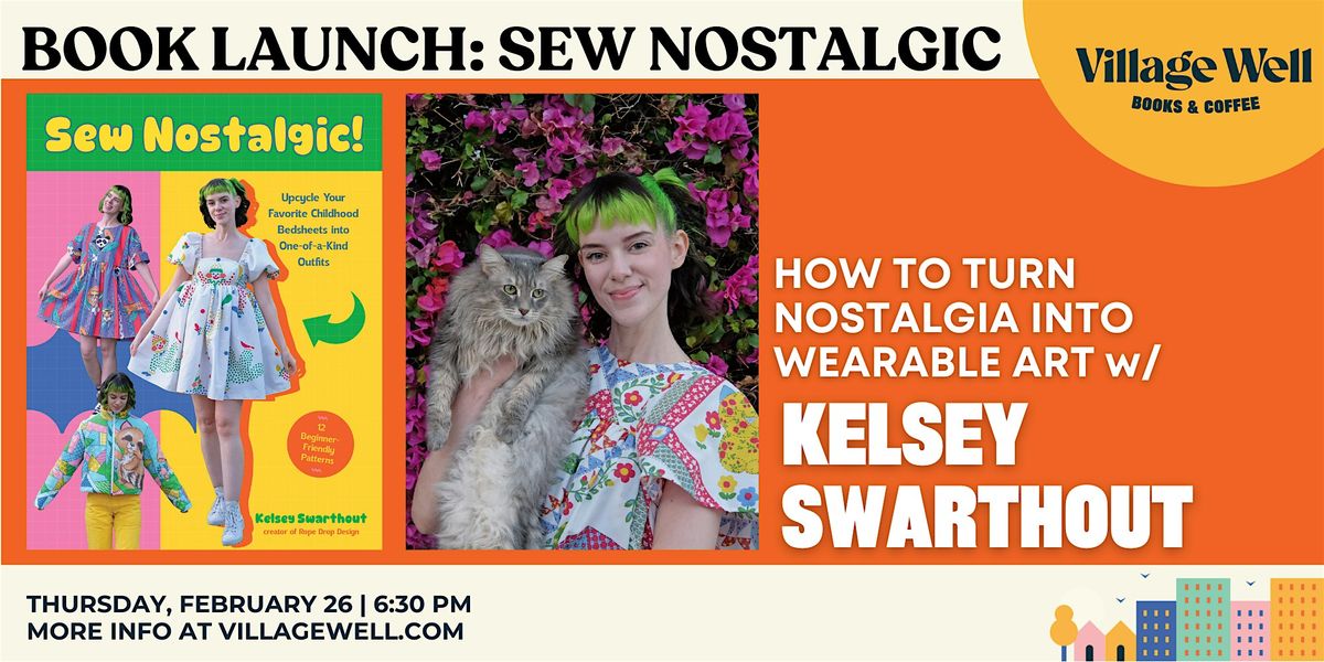 A book signing and audience Q&A with Sew Nostalgic author Kelsey Swarthout! Kelsey will chat about her creative journey, share behind-the-scenes stories from her viral designs (like designing for Dancing with the Stars!), and answer audience questions about turning nostalgia into wearable art. She can bring in several designs as well, including ones from the book and her most viral pieces.