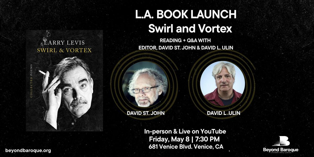 Swirl & Vortex at last makes all of Levis’s poetry available in one definitive volume. This collection includes the five books published in Levis’s lifetime, a brilliant reconfiguration of Levis’s posthumous books, and unpublished late poems, edited and with an afterword by David St. John. To trace Levis’s poetic development into his extraordinary “late style of fire”—cut short by his early death—is one of the singular experiences in contemporary poetry. Swirl & Vortex is an essential collection by one of the great poets of the end of the twentieth century, and a transformative work spiraling out toward our future. Join us for a reading, and a Q&A between editor David St. John and author, David L. Ulin. Book signings to follow.