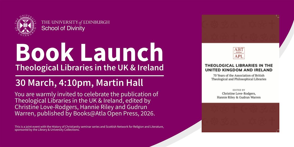 You are warmly invited to celebrate the publication of Theological Libraries in the UK & Ireland, edited by Christine Love-Rodgers, Hannie Riley & Gudrun Warren, published by Books@Atla Open Press, 2026.
