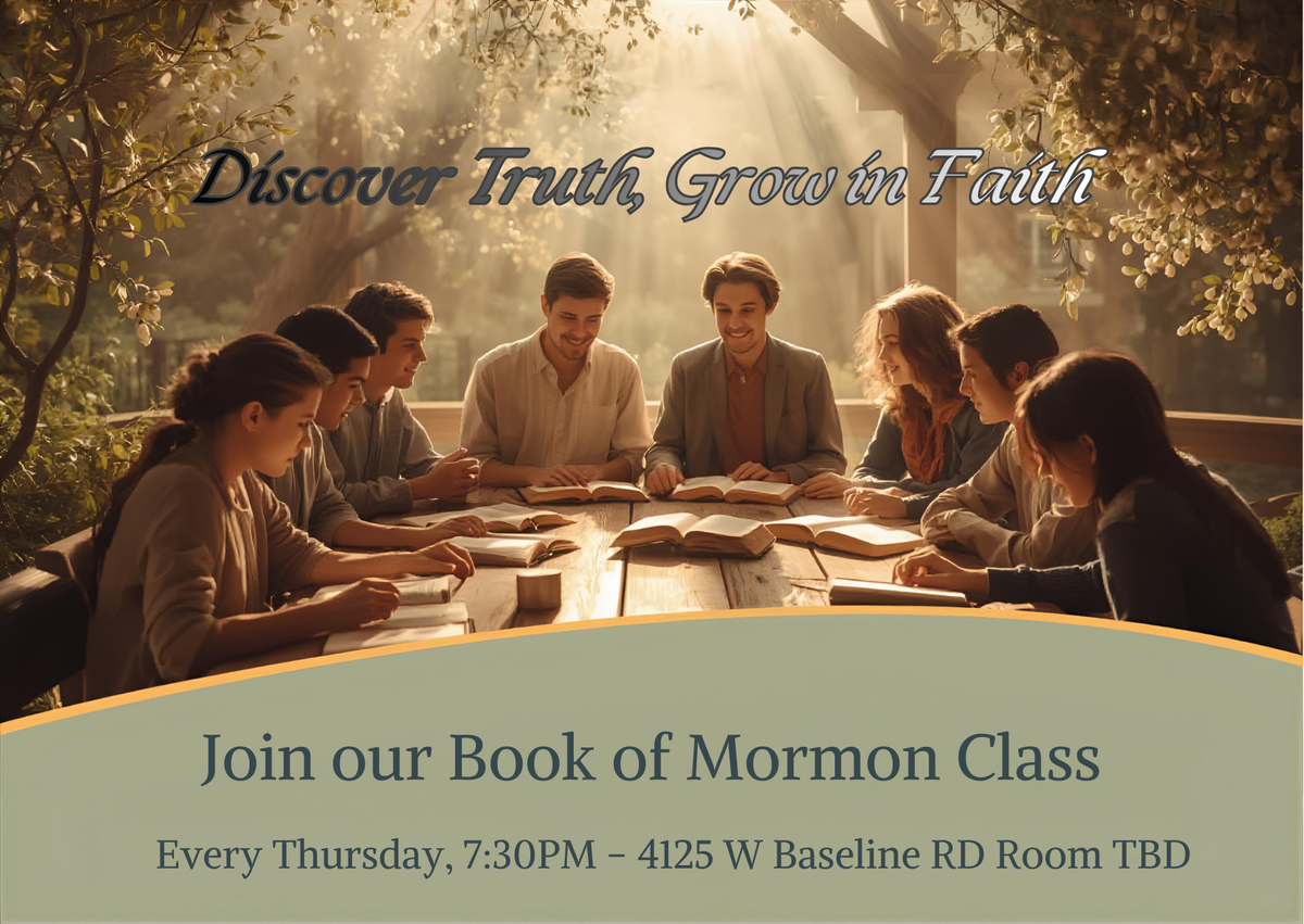 Everyone is welcome to join us with the Missionaries and learn about the Book of Mormon an important scripture of our faith. We look forward to your partcipation Thursday evenings at 7:30 PM