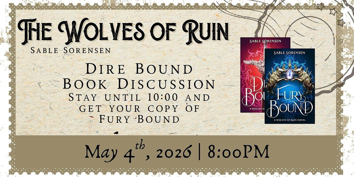 Join us for a late-night book discussion and release celebration featuring Dire Bound and the highly anticipated sequel Fury Bound by Sable Sorensen.