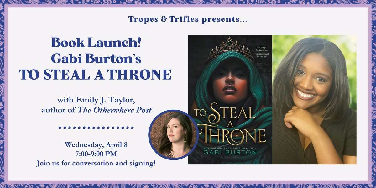Join us to celebrate the release of TO STEAL A THRONE, by Gabi Burton! Gabi will be joined in conversation by Emily J. Taylor, author of THE OTHERWHERE POST.