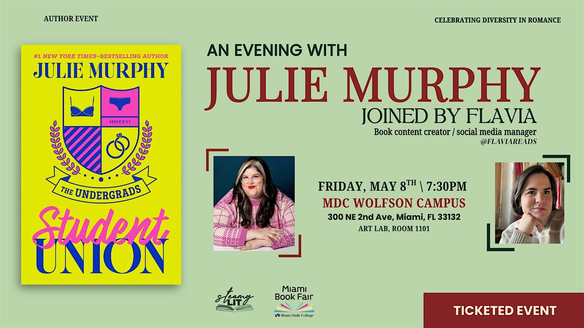 Join us for a special evening with author Julie Murphy and booktok sensation, Flavia @flaviareads for the release of her book 'The Undergrads:Student Union' . The event will take place on Friday, May 8th, 7:30 p.m. at MDC Wolfson Campus (300 NE 2nd Ave, Miami, FL 33132) - Art Lab, Room 1101 (Building 1, First Floor).