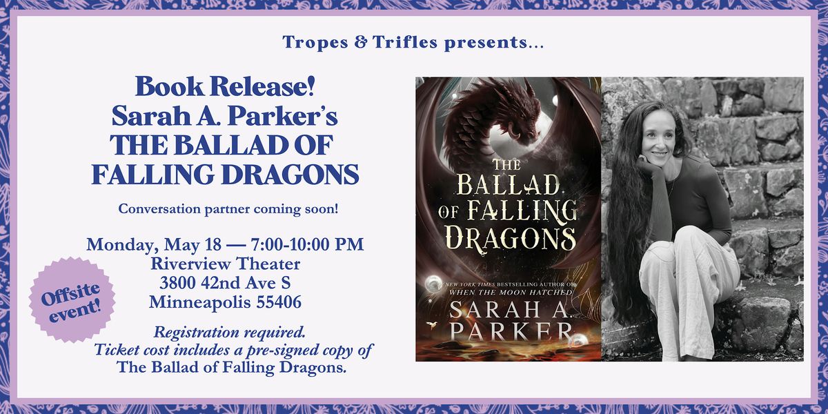 Signing limit: 3 books total, inclusive of the pre-signed copy of THE BALLAD OF FALLING DRAGONS. One of these three may be personalized (optional); the other two will be signed only. (The two additional titles may be brought from home. Copies pre-ordered for event pickup or purchased on-site will be pre-signed.)