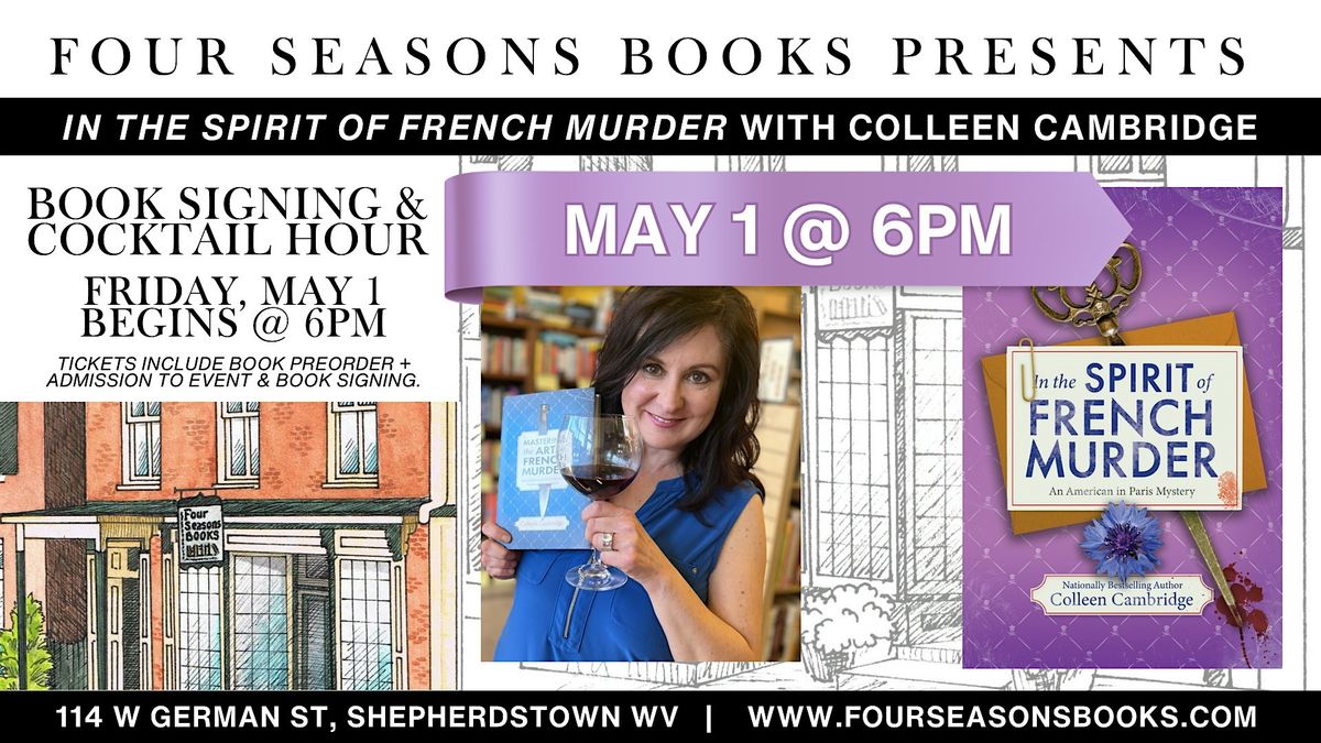 Join us for an especially cozy evening at Four Seasons Books with USA Today bestselling author Colleen Cambridge for a relaxed book signing, reader hangout, and cocktail-forward author event celebrating In the Spirit of French M**der, the newest installment in her American in Paris Mystery series.