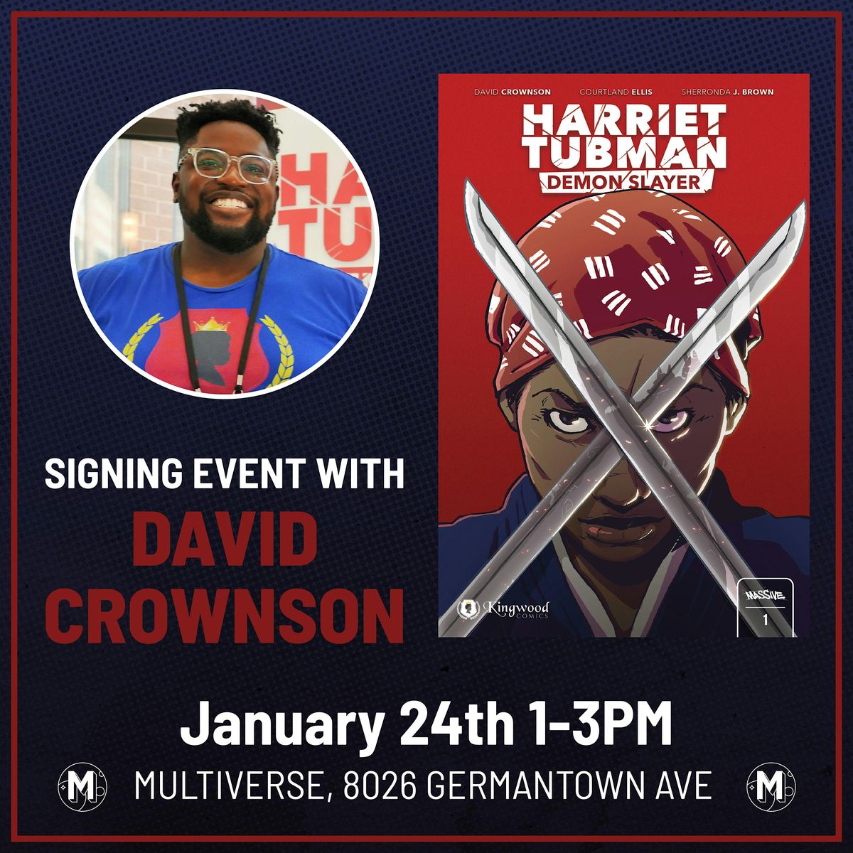 David Crownson is the creator and writer of the hit comic book series Harriet Tubman Demon Slayer, a supernatural re-imagining of the freedom fighter.