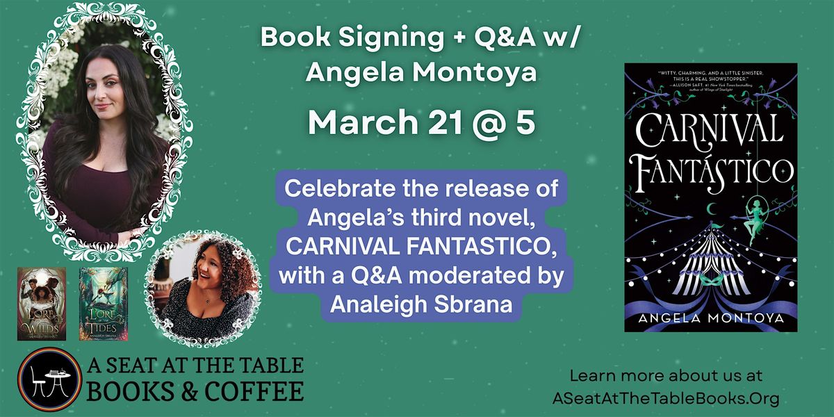 Join us in welcoming back Angela Montoya to the store for the release of her third novel, CARNIVAL FANTASTICO! Angela will be joined by moderator Analeigh Sbrana, author of the Lore of the Wilds duology. Get your copy of the book signed and meet Angela and Analeigh!