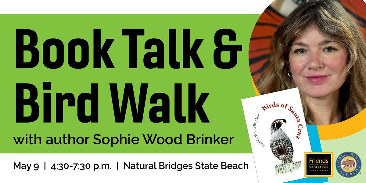 She will talk about her new guide, Birds of Santa Cruz, followed by a birding stroll through the park to look at birds. Brinker's book is a charming, full-color guide to the birds of Santa Cruz infused with California coastal soul and the quiet fierceness of love one can only derive from ardent attention.