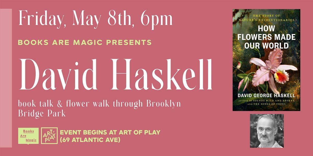 Spring is here, and Brooklyn is BLOOMING! Can you identify the flowers that are sprouting up around the city? We're teaming up with our neighbors at Art of Play for a very special book talk and flower walk with writer and biologist David George Haskell, author of How Flowers Made Our World.