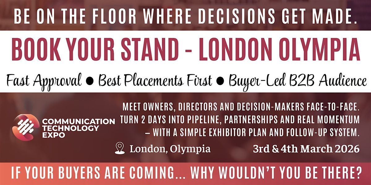 If your ideal customers are owners, directors, managers, or buyers - Communication & Technology Expo at London Olympia (3–4 March 2026) is your two-day window to accelerate pipeline, credibility, and visibility.