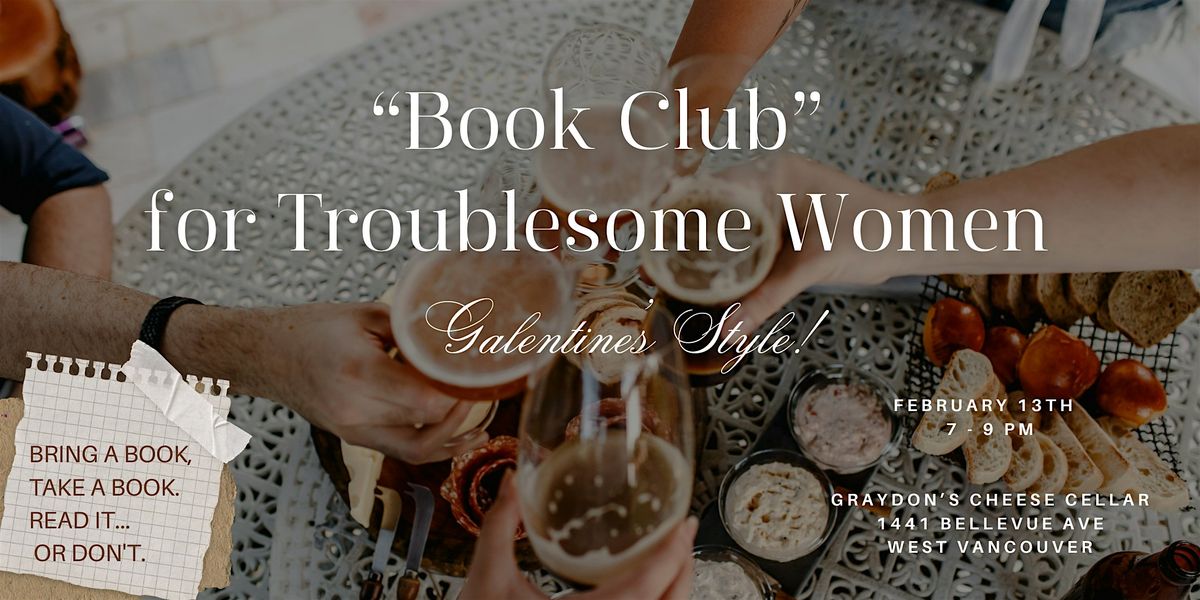 Bring a book. Take a book. Read it or don't. Come for the wine, cheese, charcuterie and a some laughs while we celebrate our first Book Club for Troublesome Women book exchange event! We may end up reading the labels on the wine but hey, at least we read something!