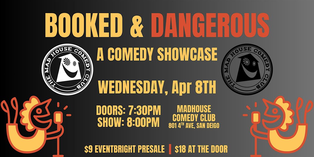 Welcome to Booked & Dangerous A Comedy Showcase happening at Mad House Comedy Club! Get ready to laugh your socks off on Apr 8, 2025 at 8:00 PM (Pacific Time). This event promises a night full of hilarious jokes and side-splitting comedy performances. Don't miss out on this opportunity to have a great time with friends and family. Come join us for a memorable evening of laughter and fun! Doors open at 7:30 PM