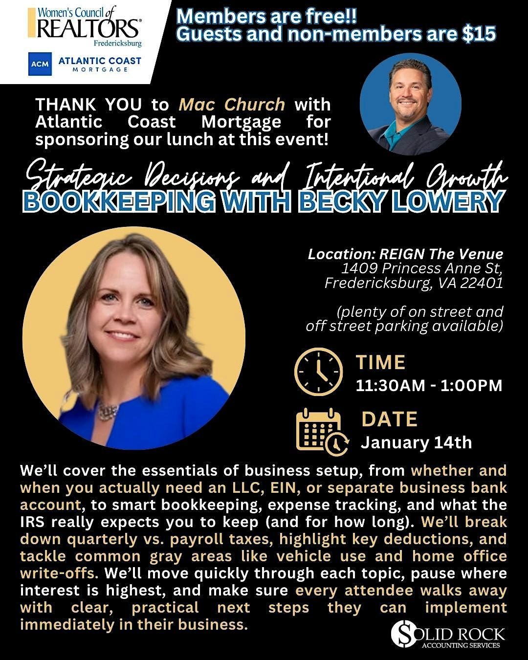 Thank you to Mac Church with Atlantic Coast Mortgage for sponsoring our lunch for this event! Be sure to help us show our appreciation by telling him thanks at the event!