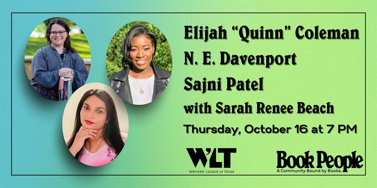 BookPeople and Writers' League of Texas welcomes Sajni Patel, N. E. Davenport, and Elijah “Quinn” Coleman for their February Third Thursday.About this Event