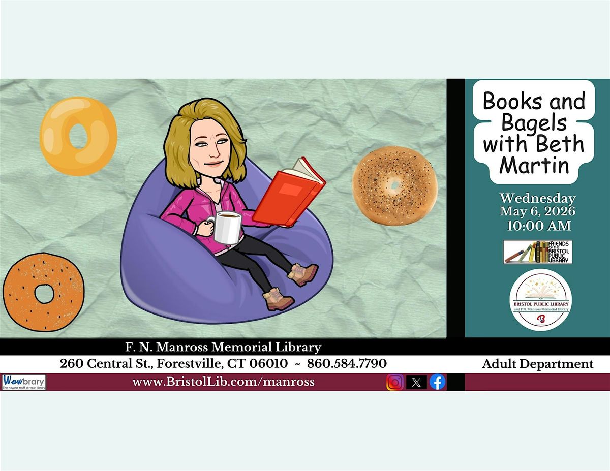 Join Supervisor of Branch Services Beth Martin at Manross Memorial Library for a look at our spring 2026 new books. Refreshments provided and, of course, bagels! Please sign up in advance with a phone number.