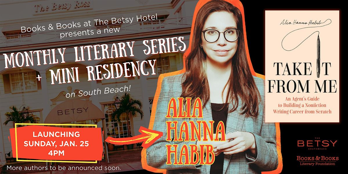 The series debuts with Alia Hanna Habib, a prominent literary agent and author of Take It from Me: An Agent’s Guide to Building a Nonfiction Writing Career from Scratch. Known for representing Pulitzer Prize winners, National Book Award finalists and MacArthur Fellows, Habib offers an insider’s perspective on the publishing world, making her the ideal inaugural guest for a series dedicated to the power of storytelling. She will be in conversation with Julie Marie Wade.