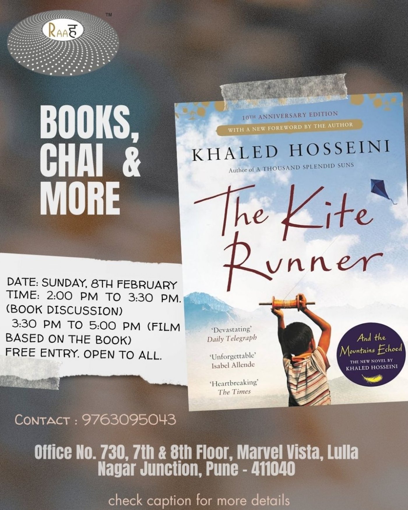 This month, Books, Chai & More, the Raah Book Club, will be discussing the book The Kite Runner by Khaled Hosseini. After the discussion we will watch the Film based on the book.