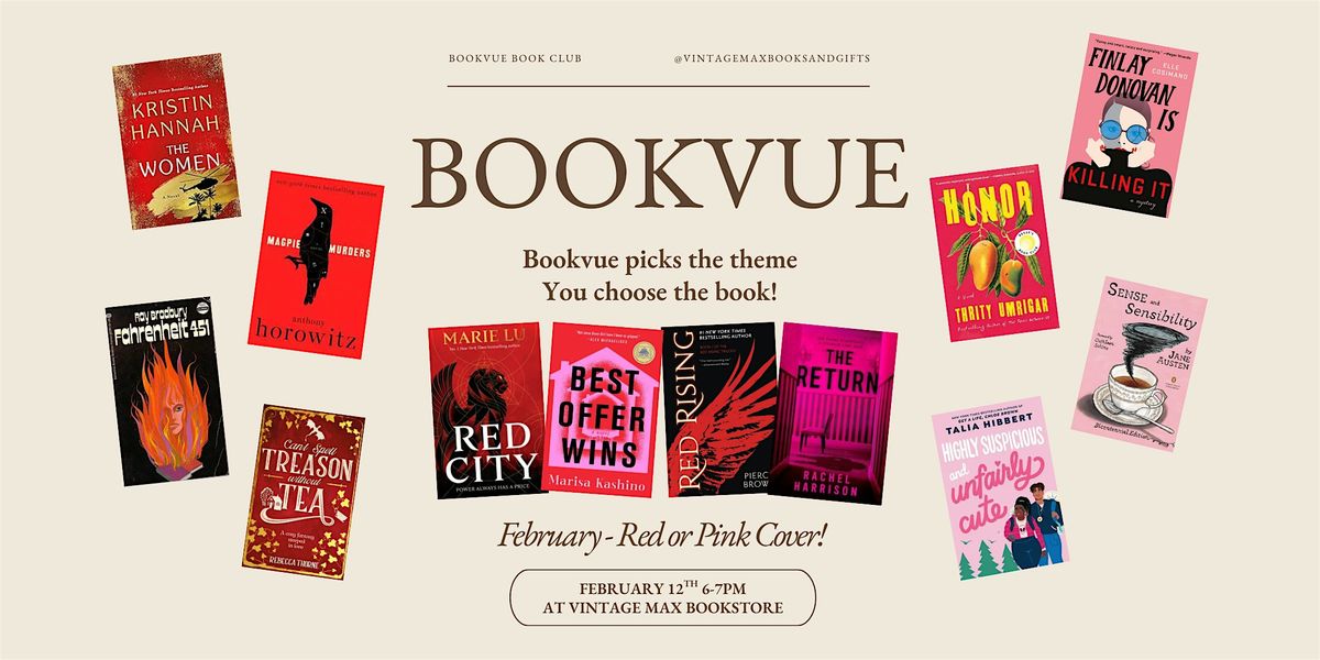 WELCOME TO BOOKVUE BOOK CLUB - Hosted by Andrew Bayne Memorial Library and Vintage Max bookstore in Bellevue!