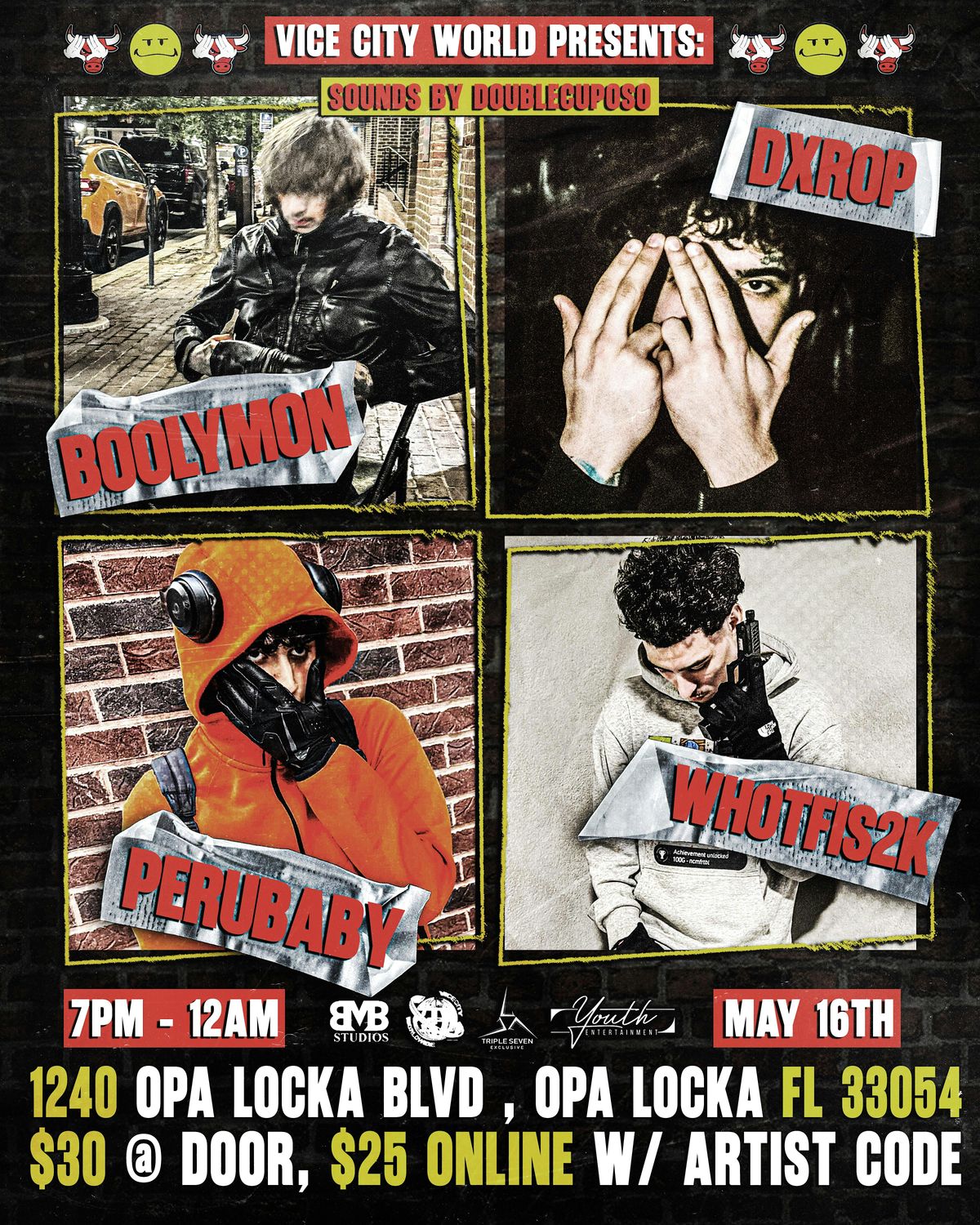 Get ready to experience a wild night of performances by BOOLYMON, DXROP, PERUBABY, and WHOTFIS2K in Miami!Agenda
