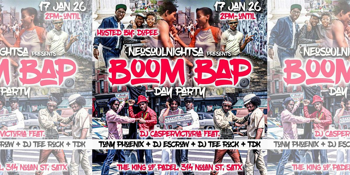 Get ready to groove at the Boom Bap Day Party! 🎉 Join us at 314 Nolan St on January 17, 2026 at 2:00 PM (Central Time) for a day filled with great music, delicious food, and good vibes. Let's make some unforgettable memories together! Don't miss out on this epic event!