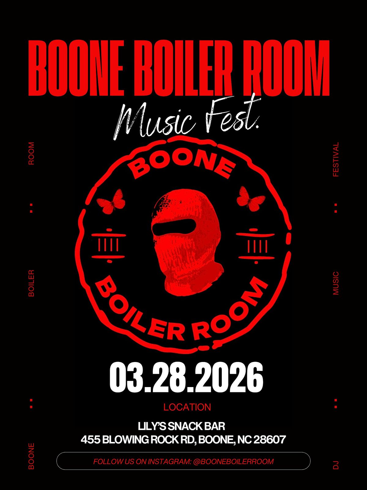 Come join us for the fourth and final installment of Boone Boiler Room at Lily's Snack Bar! BUT there's a twist, this will be a festival starting in the day to celebrate music and our community of music lovers. Get ready for a day/night of good vibes, great music, and awesome people. Whether you're a seasoned Boiler Room attendee or a first-timer, we are happy to have you. Don't miss out on the chance to dance the night away and make memories that will last a lifetime. See you there!