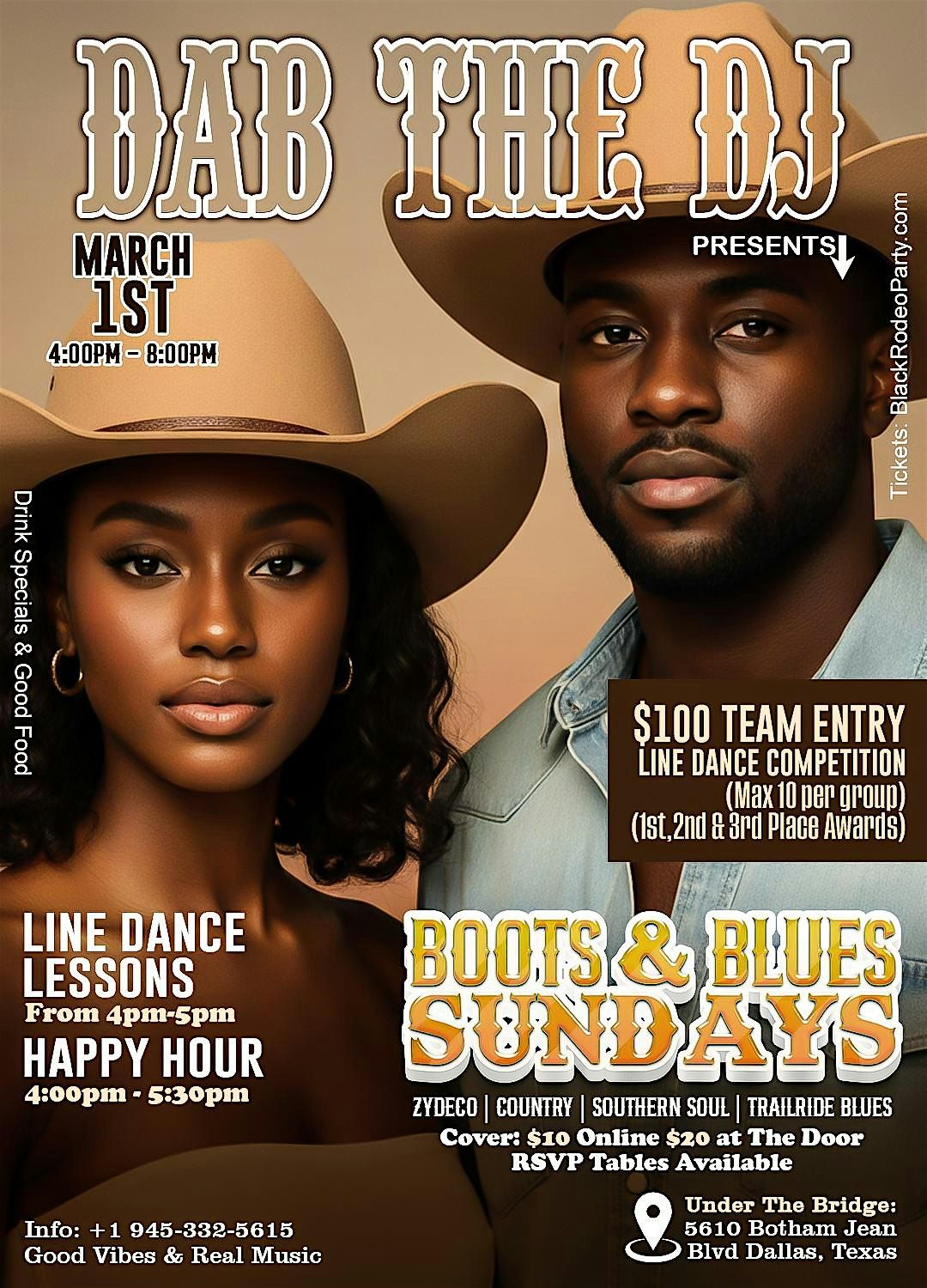 Kick back and strap on your boots for a fun-filled Sunday at Boots & Blues Sundays! Join us in person for a lively afternoon of great music, good vibes, and plenty of dancing. Whether you're a blues enthusiast or just looking to unwind, this is the perfect way to wrap up your weekend. Don't miss out on the bluesy rhythms and friendly atmosphere!