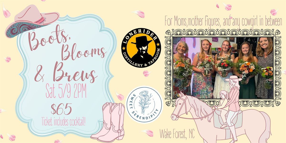 Learn the basics of floral design with local NC blooms at Lonerider Distillery & Taproom at Wake Forest! This class will feature a unique color pallate as well as unique greenery! Bring the family and celebrate the special figure in your life! Guided instruction will teach you all the tips and tricks you need to make a beautiful arrangement to bring home with you.