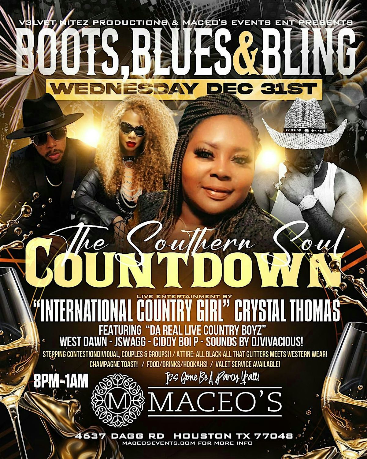 Get ready to ring in the New Year with some southern charm, cowboy boots, blues music, and sparkling bling at our countdown event!
