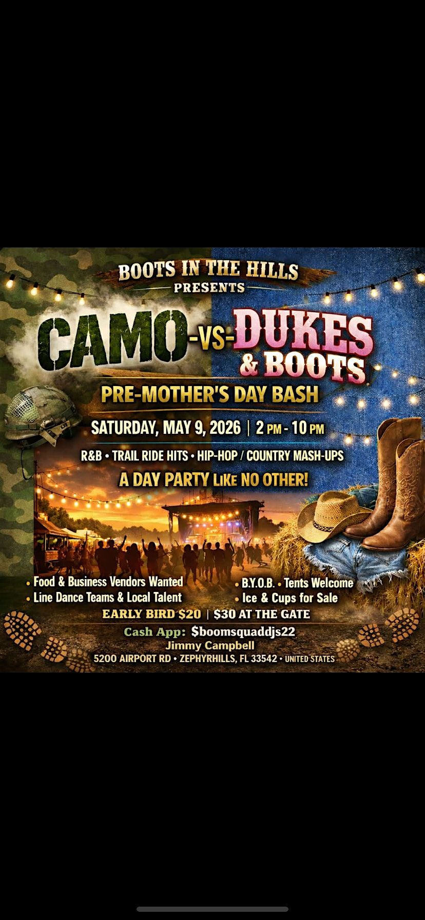CAMO VS DUKES & BOOTS! PRE-MOTHERS DAY BASH! THE ULTIMATE DAY PARTY