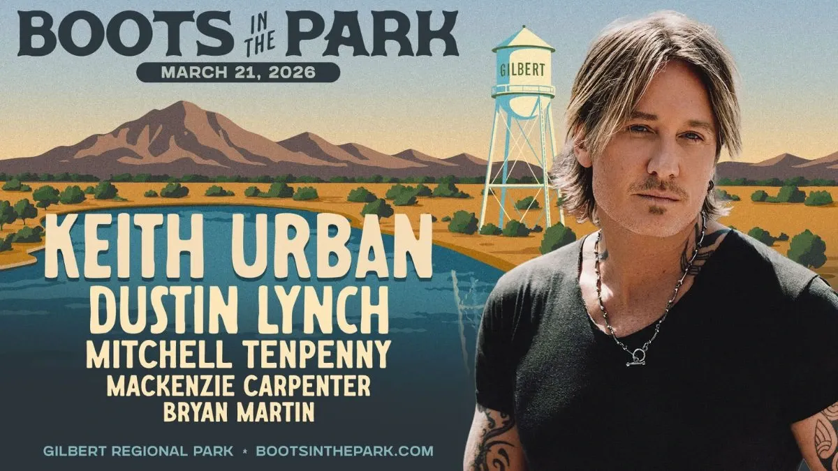📍 Location: 33.2577, -111.725🌟 Step into a world of wonder at Boots In The Park with Keith Urban, Dustin Lynch, Mitchell Tenpenny, and more, where extraordinary moments await! 🏛️ Located at Gilbert Regional Park in dynamic Gilbert, AZ, this event will become the talk of the town. 📅 Join us on March 21st, 2026 at 07:00 PM for a celebration that defies the ordinary. ✨ This curated experience brings together the best of entertainment, culture, and community spirit. Every detail has been thoughtfully planned to ensure an unforgettable experience for all our guests. 🎯 Take advantage of this opportunity to be part of something special. 🎊 Early registration is recommended as space is limited!