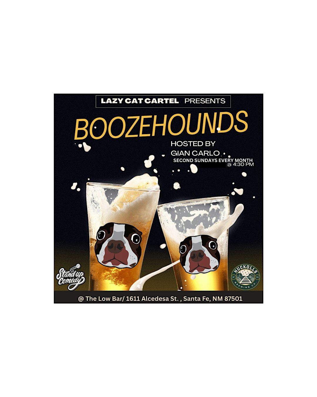 2nd Sundays of the month, join comic Gian Carlo and that show's Boozehounds for a late afternoon full of laughs!