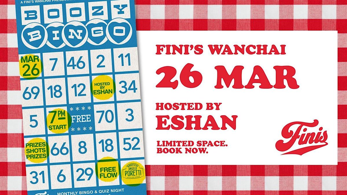 Join us at FINI'S Wanchai on Thursday, 26 March for a night of bingo, trivia and boozy fun — hosted by the one and only Quiz Master Eshan, keeping you laughing and on your toes all evening.