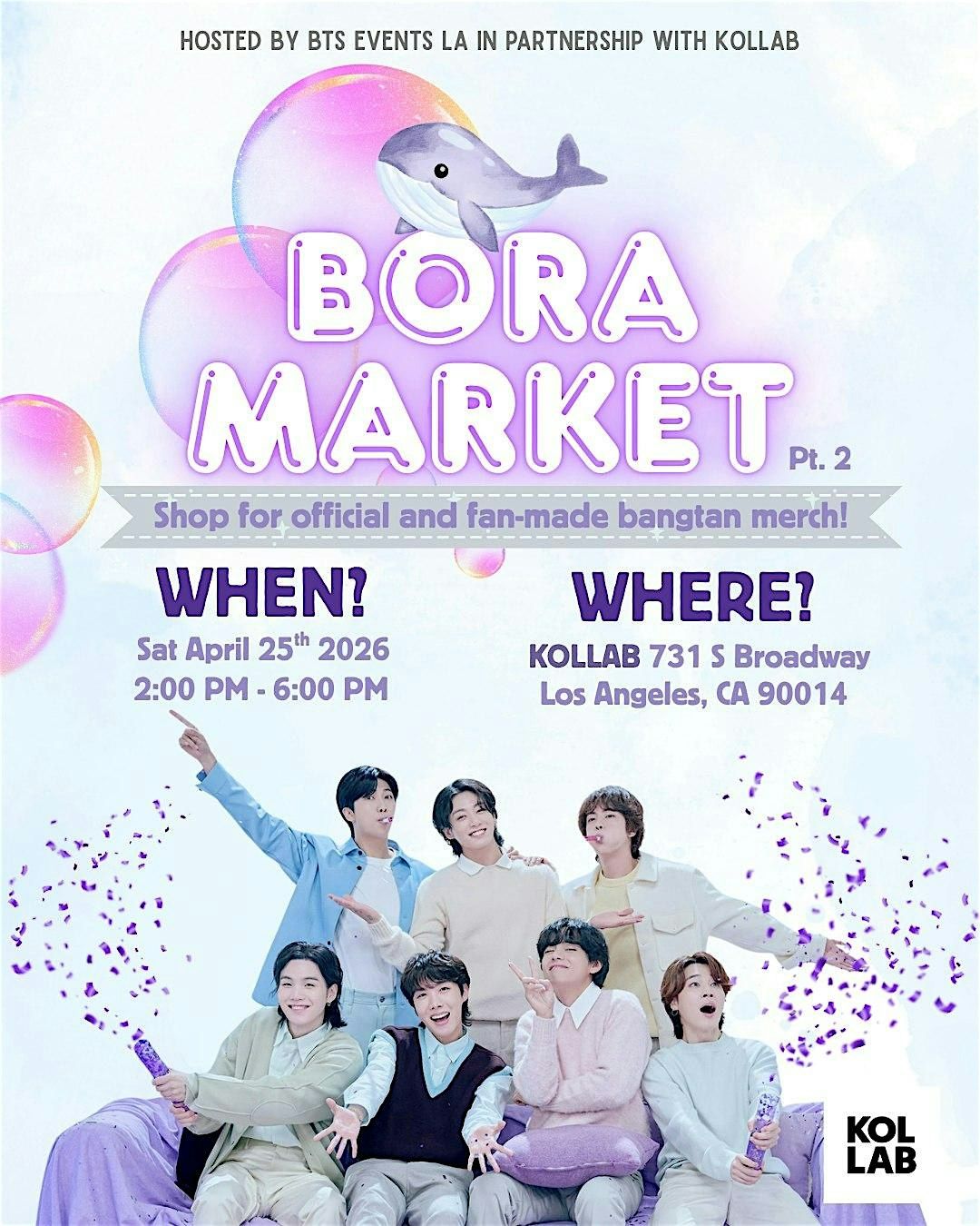 Join us on Saturday, April 25th from 2pm-6pm Downtown LA for Bora Market Pt.2 and hang out with ARMYs. We’ll have free event activities, music, raffle prizes, and more!