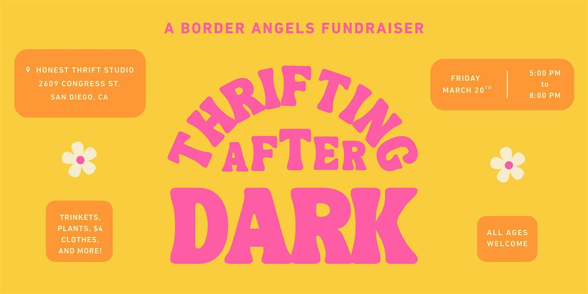 Thrift for a cause on Friday, March 20th, during Thrifting After Dark: a Border Angels Fundraiser hosted by Honest Thrift Studio. 100% of our profits from this event will be donated to Border Angels programs!