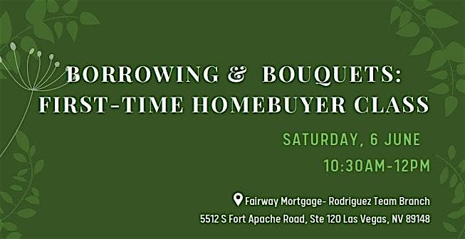 Join the Rodriguez Team, as Michael Rodriguez, the top licenced loan officer in Nevada at Fairway Mortgage, addresses all questions for First-Time Homebuyers (or those seeking a refresher). Breakfast will be provided as well as a complimentary build-your-own bouquet.