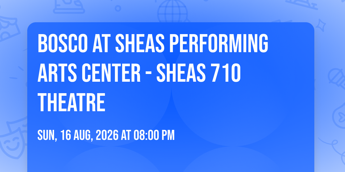 🎉 Welcome to Bosco at Sheas Performing Arts Center - Sheas 710 Theatre, where dreams come alive and possibilities are endless! 🏛️ Join us at Sheas Performing Arts Center - Sheas 710 Theatre in the heart of Buffalo, NY for an event that defies expectations. 📅 On August 16th, 2026 at 08:00 PM, be part of something truly extraordinary as we bring together innovation, entertainment, and pure magic. ✨ Every aspect has been carefully designed to ensure an unforgettable experience for all our guests. Whether you're seeking adventure, inspiration, or simply a break from the ordinary, this event promises to deliver beyond your wildest dreams. 🎊 Prepare for a journey into the extraordinary!