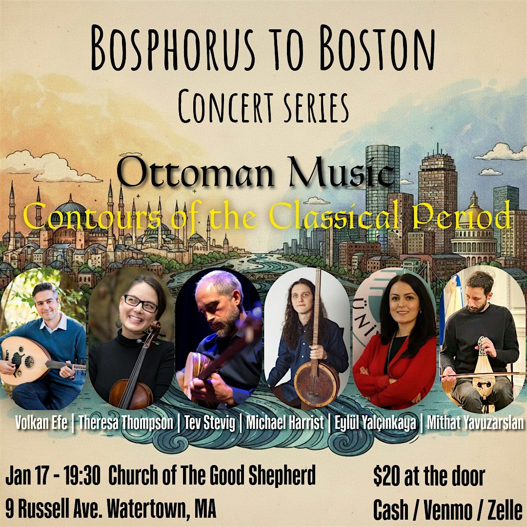 The opening concert of the Bosphorus to Boston Concert Series invites you on a musical journey through Ottoman classical music from the 16th to the 19th centuries.