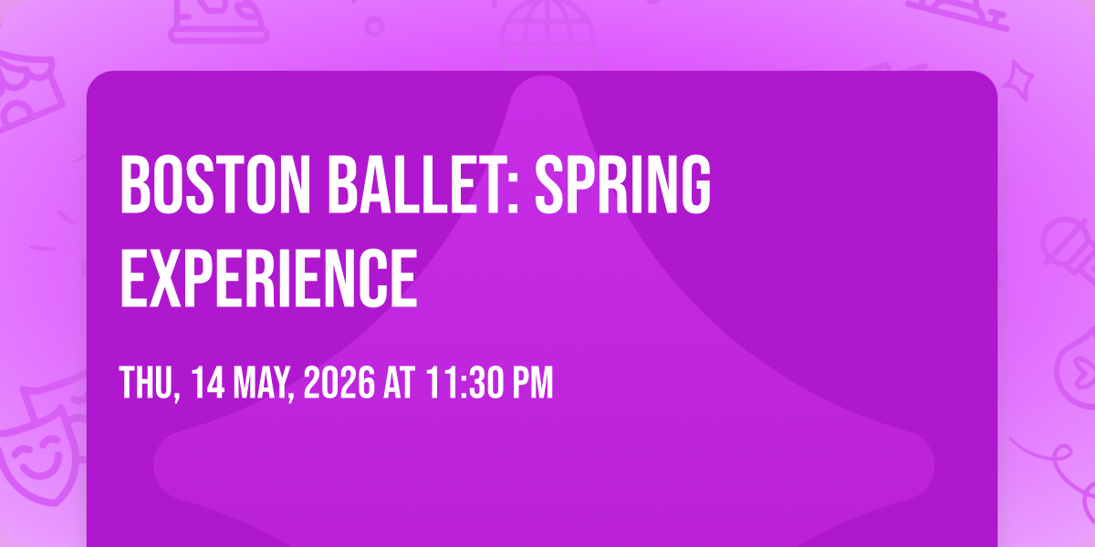 📍 Location: 42.354, -71.0623🌟 Be part of history at Boston Ballet: Spring Experience, an extraordinary gathering that will captivate your imagination! 🏛️ The prestigious Citizens Bank Opera House in Boston, MA sets the stage for an unforgettable experience on May 14th, 2026 at 11:30 PM. ✨ They are bringing together the finest elements of entertainment and innovation to create moments that will take your breath away. From the moment you arrive, you'll be immersed in an atmosphere of wonder and excitement. 🎯 This carefully planned event ensures every guest experiences something truly special. 🎊 Early booking is recommended for this must-attend event of the season!
