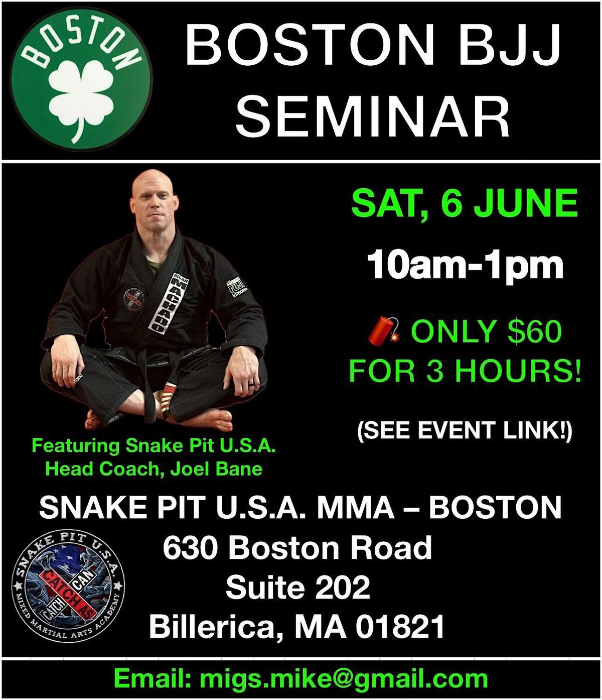 BOSTON, MASSACHUSETTS BRAZILIAN JIU-JITSU SEMINAR WITH INTERNATIONALLY RENOWNED GRAPPLING COACH, JOEL BANE!