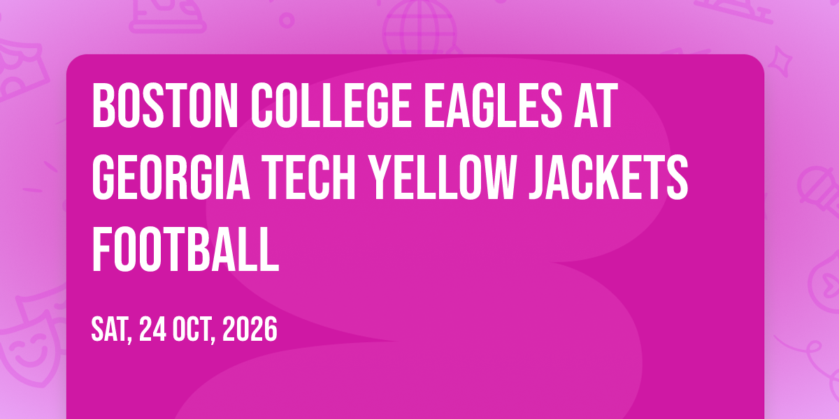 📍 Location: 33.7724, -84.3928✨ Experience the magic of Boston College Eagles at Georgia Tech Yellow Jackets Football, where moments become memories that last a lifetime! 🏛️ The iconic Bobby Dodd Stadium in Atlanta, GA sets the perfect stage for an unforgettable celebration on October 24th, 2026 at 07:30 AM. 🌟 It's been a curated experience that brings together the best of entertainment and innovation, creating an atmosphere of wonder and excitement. From the moment you arrive, you'll be immersed in a world where the ordinary transforms into the extraordinary. 🎊 Book early to secure your place in what promises to be an event that will be talked about for years to come!