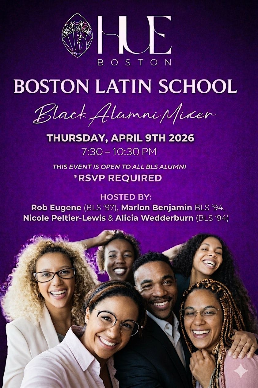 This mixer, presented by Hue Boston, the Boston Latin School Association and BLS Black Alumni Committee, aims to bring together BLS alumni to celebrate the Black alumni community and the shared pride that connects us. This event is open to all BLS Alumni and friends looking to connect, network or just have a good time and reminisce. Expect great conversation, meaningful connections and good vibes. There will be a DJ so you are welcome to stay and dance the night away! Don’t miss out on an evening full of laughter, fun along with opportunities to make new connections or strenghten old one.