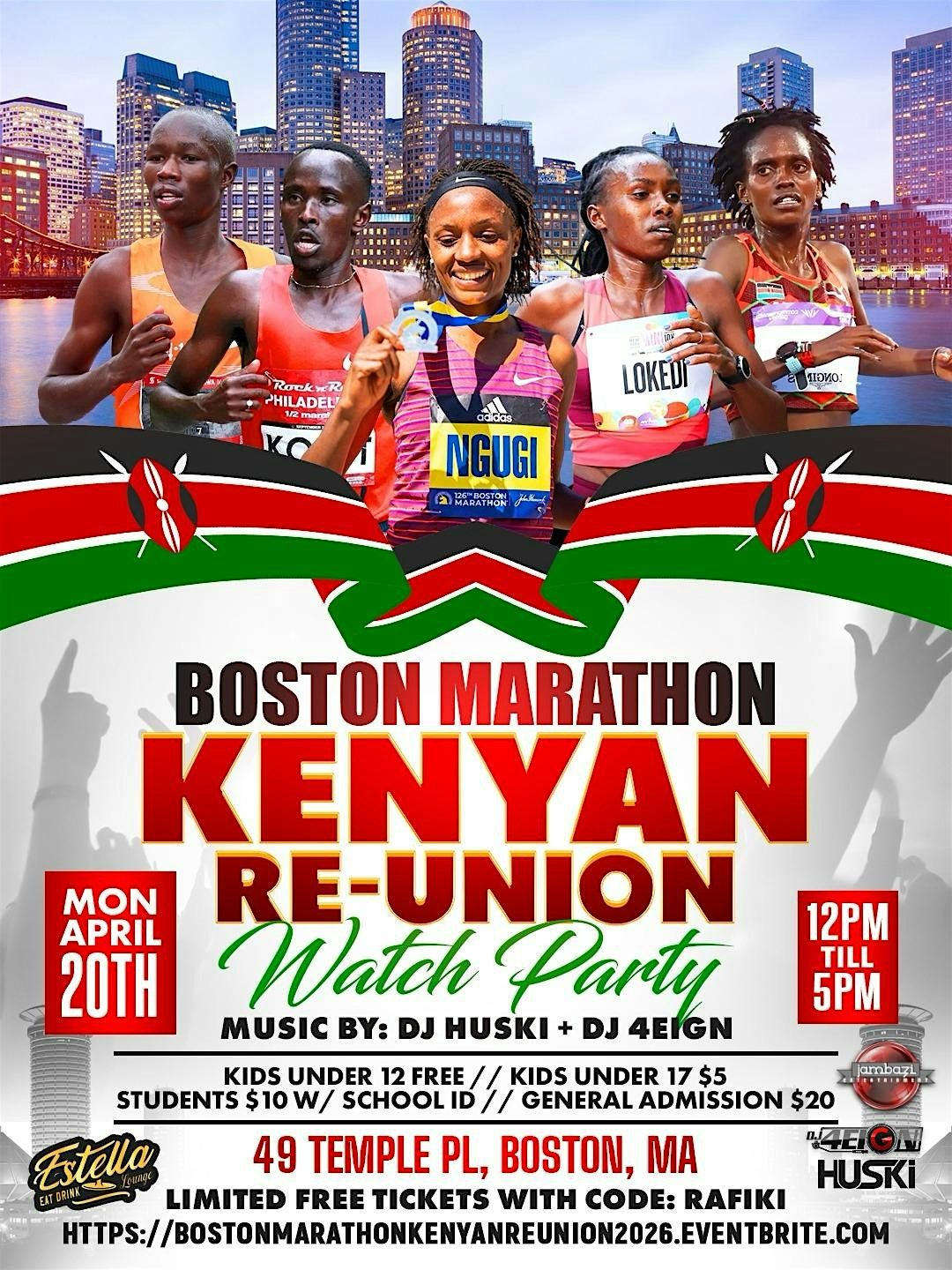 Hangout with the Kenyans and find out why this is the only watchparty and reunion event worth going to during the Boston Marathon!