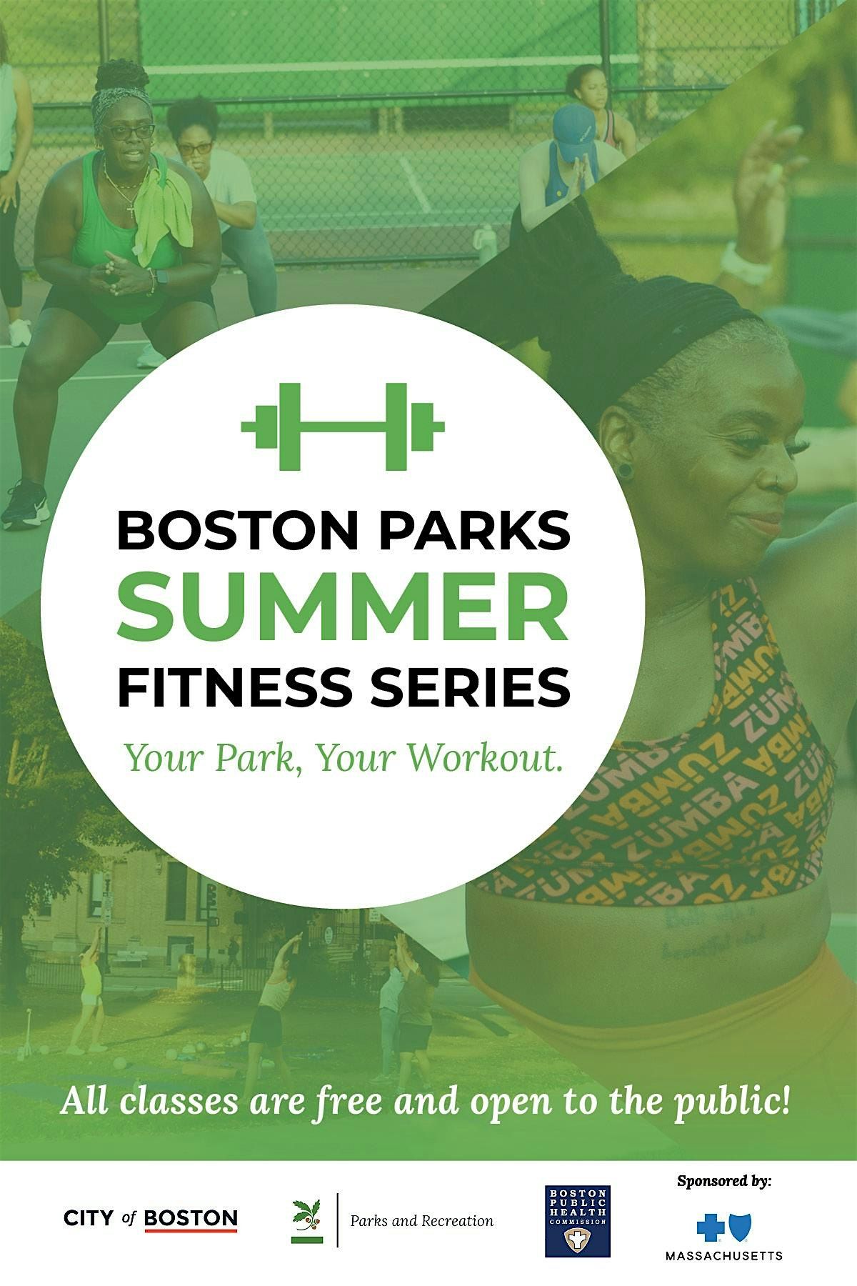 The Boston Parks and Recreation Department and the Boston Public Health Commission (BPHC) host the Boston Parks Fitness Series, sponsored by Blue Cross Blue Shield of Massachusetts. Learn more here: .