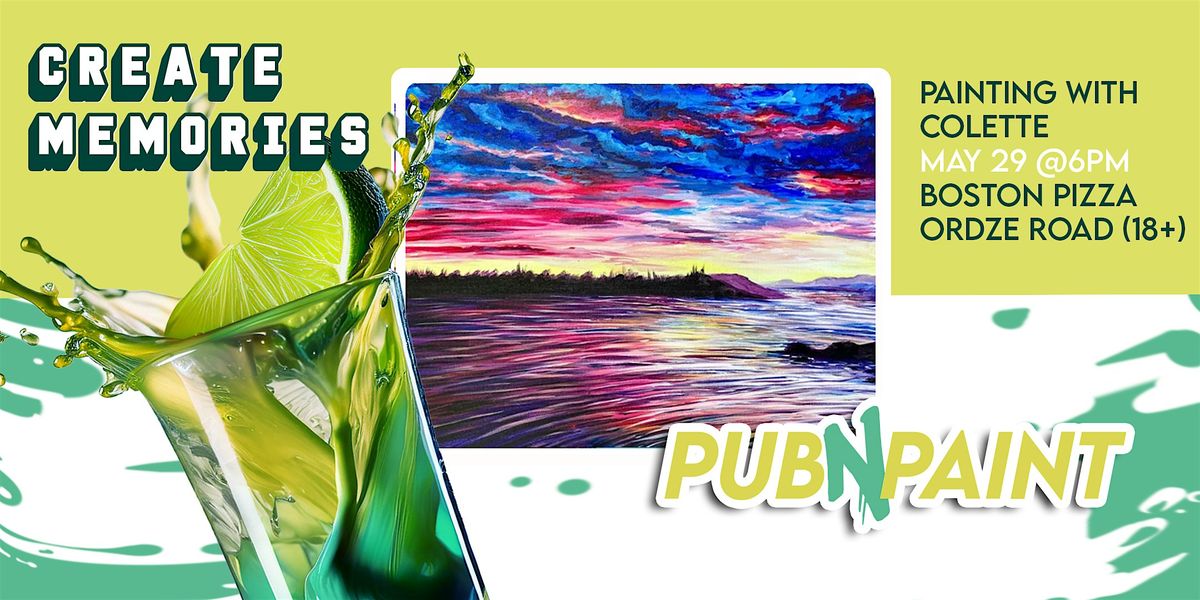 Welcome to Pub N Paint, at Boston Pizza Ordze Rd a Come follow along with our artist’s step-by-step instructions to paint your own masterpiece while sipping and munching away to your hearts content! This event is an inclusive, fun, lighthearted atmosphere to create art in good company. All supplies are included, just bring yourself and be ready to have a good time!
