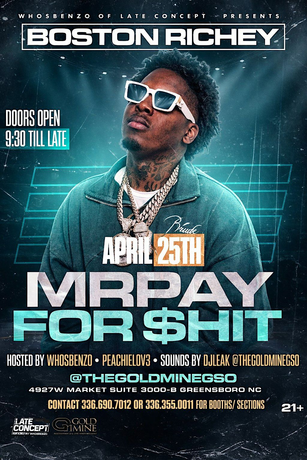 Boston Richey LIVE Apr 25 @ Gold Mine GSO WHOSBENZO hosting! Sections goin crazy 336.690.7012 / 336.355.0011About this Event