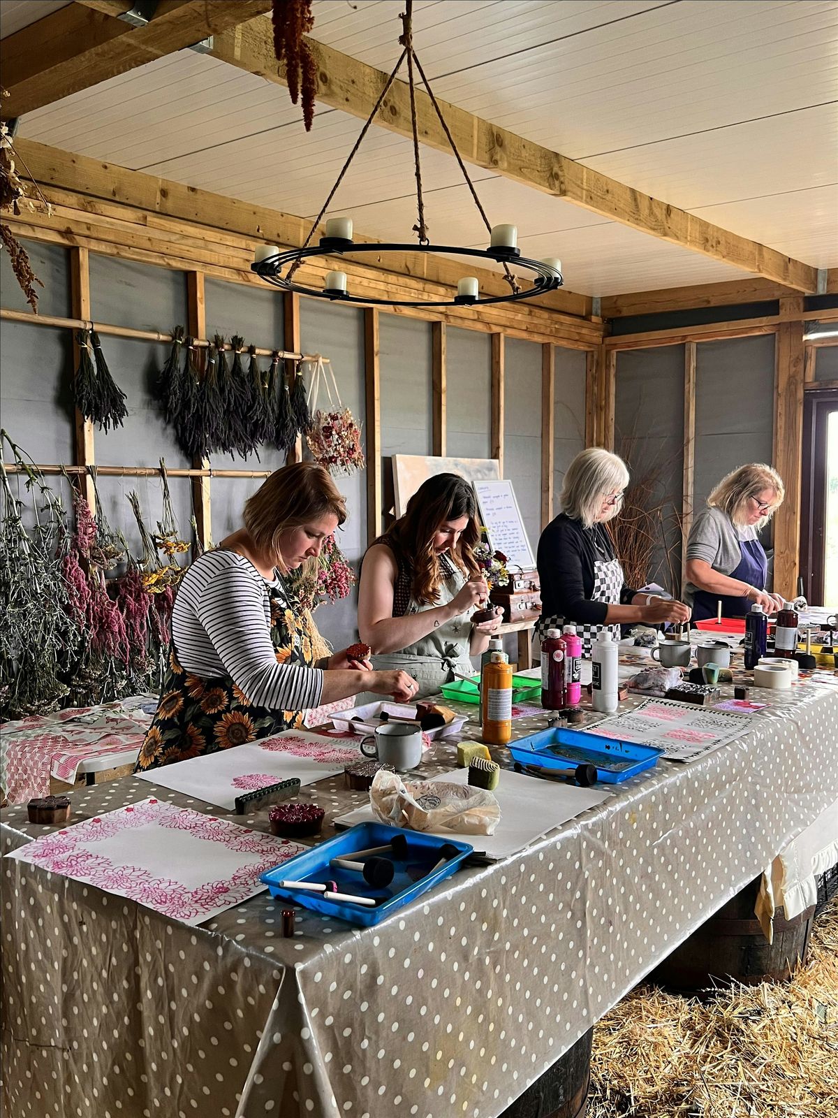 Join me for a 3 hour Botanical Block Printing Workshop at the beautiful Buckingham Flower Farm.