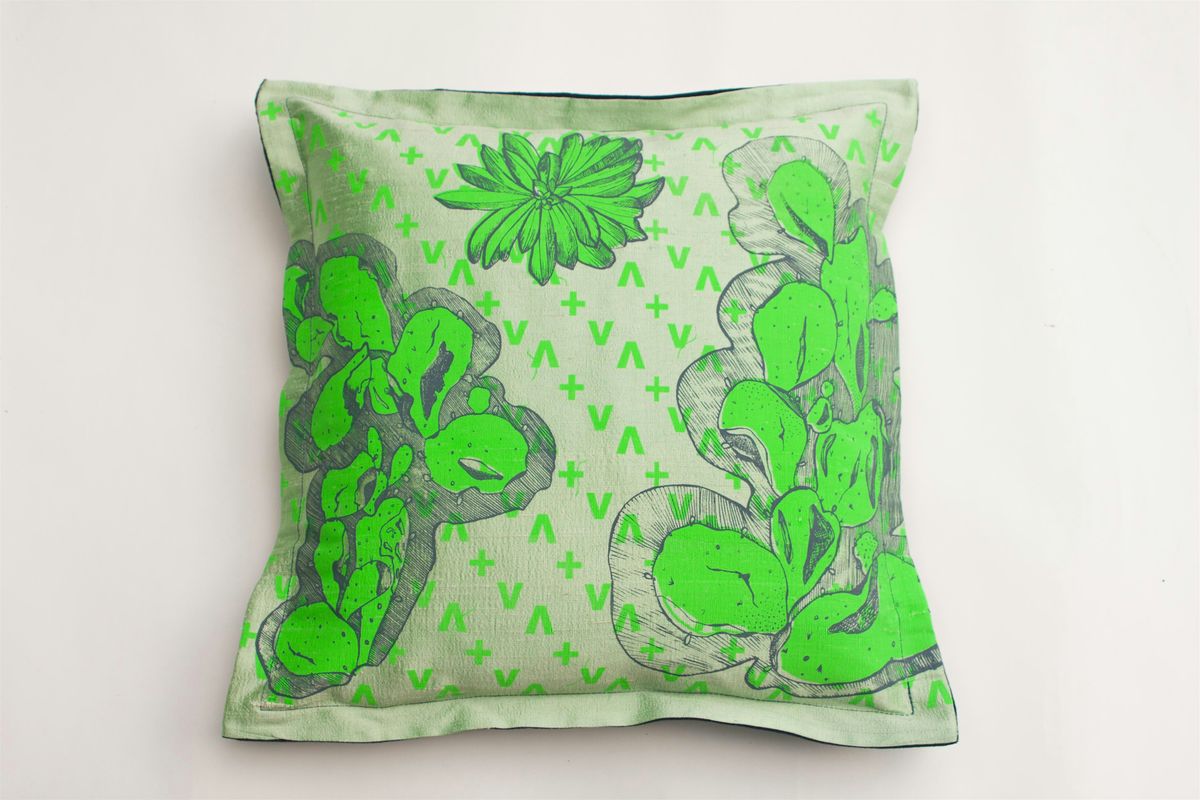 Botanical printing onto cushion cover using block printing